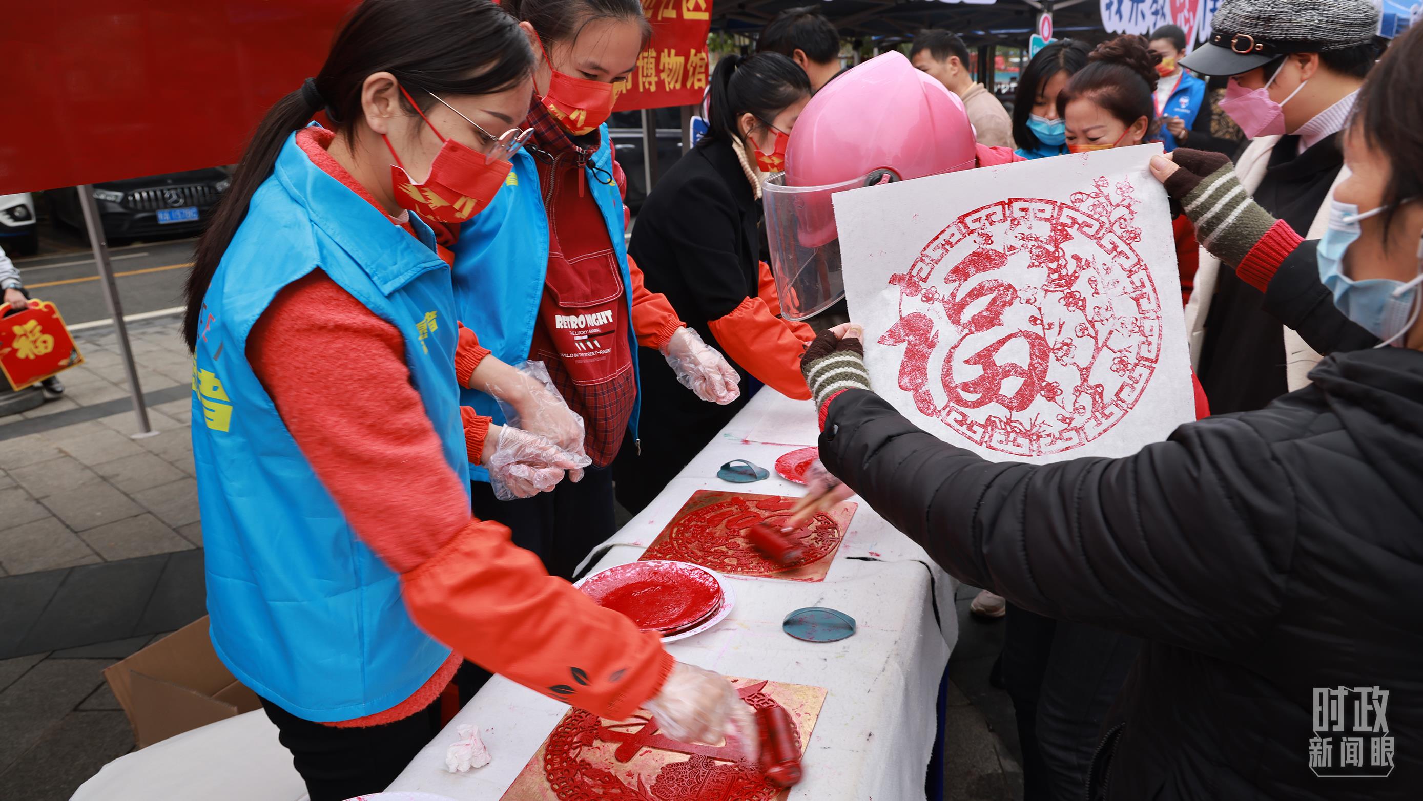 △蟠龍社區(qū)居民在社區(qū)活動(dòng)上刻板畫。