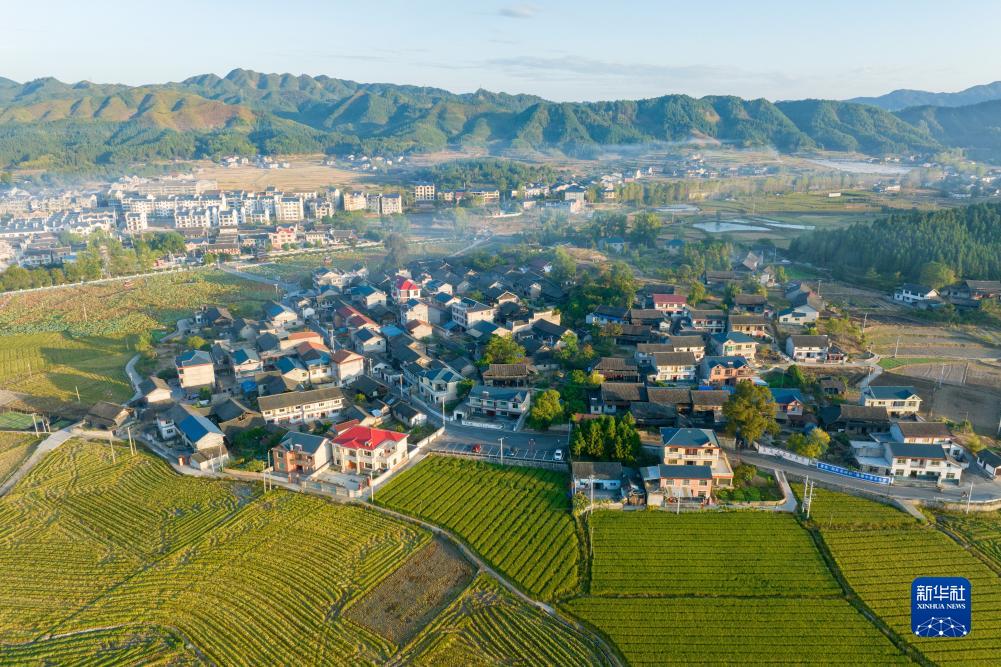 這是湖南省會(huì)同縣堡子鎮(zhèn)上坊村(無(wú)人機(jī)照片,2022年10月4日攝)新華社發(fā)(張鐳攝)