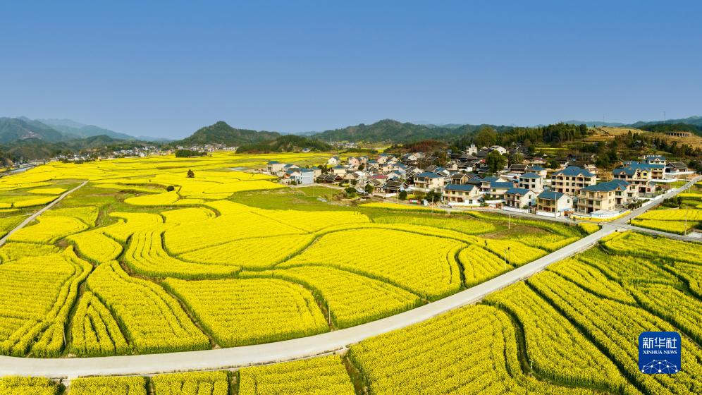 這是湖南省會(huì)同縣堡子鎮(zhèn)萬(wàn)畝油菜花海(無(wú)人機(jī)照片,2023年3月13日攝)。新華社發(fā)(張鐳攝)