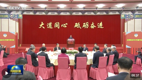 中國(guó)人民政治協(xié)商會(huì)議全國(guó)委員會(huì)12月29日上午在全國(guó)政協(xié)禮堂舉行新年茶話會(huì)。黨和國(guó)家領(lǐng)導(dǎo)人習(xí)近平、李強(qiáng)、趙樂際、王滬寧、蔡奇、丁薛祥、李希、韓正等同各民主黨派中央、全國(guó)工商聯(lián)負(fù)責(zé)人和無黨派人士代表、中央和國(guó)家機(jī)關(guān)有關(guān)方面負(fù)責(zé)人以及首都各族各界人士代表歡聚一堂,共迎2024年元旦。