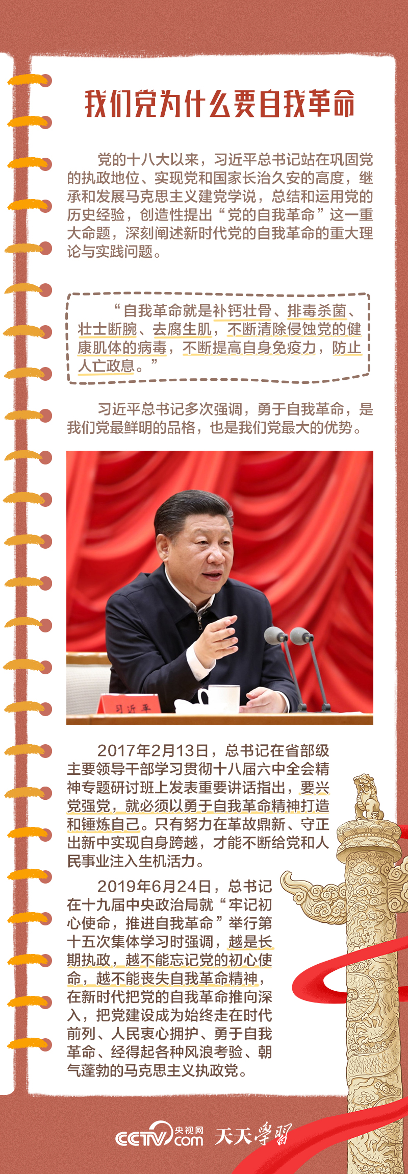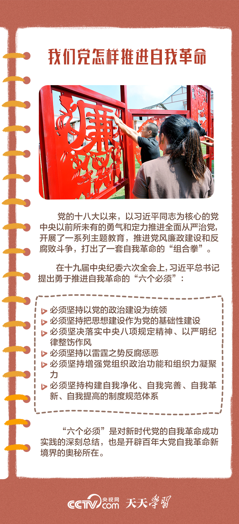 天天學(xué)習(xí)“在新時代十年全面從嚴(yán)治黨的實(shí)踐和理論探索中,我們不斷深化對黨的自我革命的認(rèn)識,積累了豐富實(shí)踐經(jīng)驗(yàn),形成了一系列重要理論成果,系統(tǒng)回答了我們黨為什么要自我革命、為什么能自我革命、怎樣推進(jìn)自我革命等重大問題。”1月8日,習(xí)近平總書記在中國共產(chǎn)黨第二十屆中央紀(jì)律檢查委員會第三次全體會議上發(fā)表重要講話。
