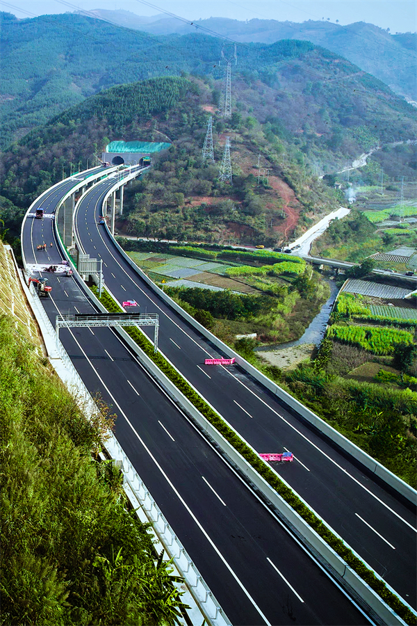 至此,起點(diǎn)于隆林縣平班鎮(zhèn)委樂村,由東向西途經(jīng)南希屯、南卡界屯、南隴屯,終點(diǎn)于隆林縣城東南側(cè)那他屯,雙向4車道、寬26米、行車速度每小時100公里,又是廣西高速公路規(guī)劃網(wǎng)重要組成部分的一條發(fā)展之路、振興之路就建成通車了。汕昆高速公路與隆林縣城也不再擦肩而過,區(qū)域性交通樞紐的神經(jīng)末梢打通了。
