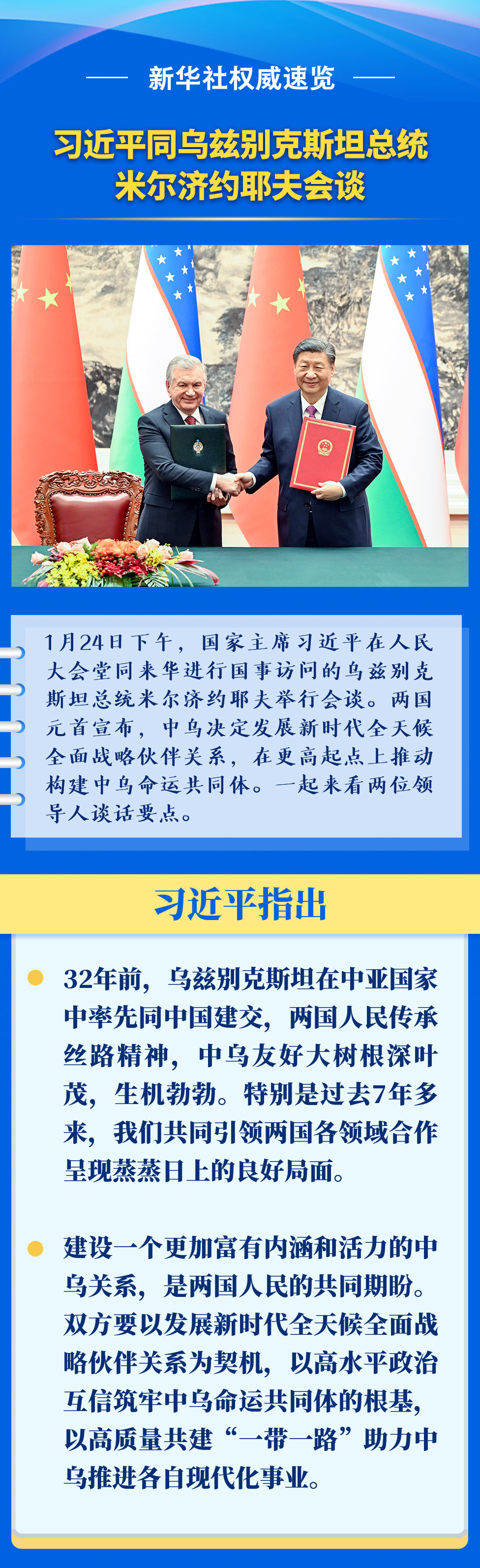 新華社權(quán)威速覽 | 習近平同烏茲別克斯坦總統(tǒng)米爾濟約耶夫會談