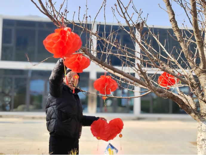 過新年掛燈籠是中國傳統(tǒng)習俗,象征著團團圓圓、紅紅火火。雖然當下正值嚴寒時節(jié),但干部群眾一同掛燈籠的熱情卻很高漲,你扶梯子、我掛燈籠的熱鬧場景隨處可見。大家在相互密切配合下,一個個帶著新年祝福的紅燈籠掛滿了大街小巷,為全鄉(xiāng)村容村貌增色不少。“大紅燈籠掛起來,一下子就有年味啦,看起來真喜慶!”過往的村民高興地說到。
