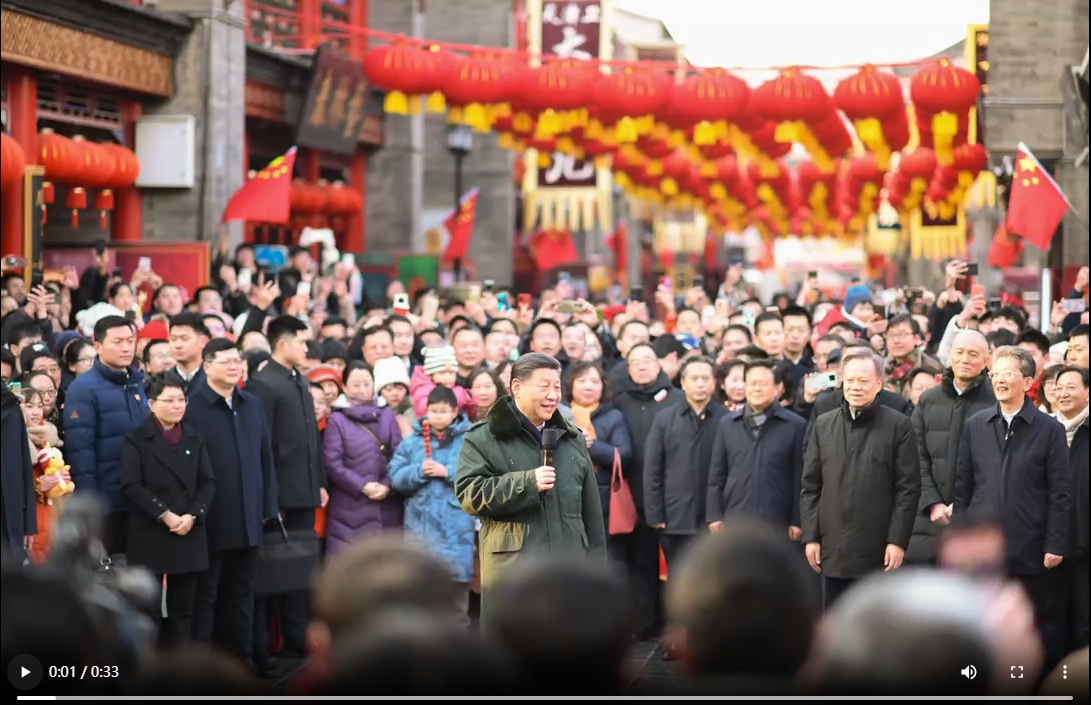 中華民族傳統(tǒng)節(jié)日春節(jié)即將到來之際,中共中央總書記、國(guó)家主席、中央軍委主席習(xí)近平來到天津,看望慰問基層干部群眾,向全國(guó)各族人民和香港同胞、澳門同胞、臺(tái)灣同胞、海外僑胞拜年!