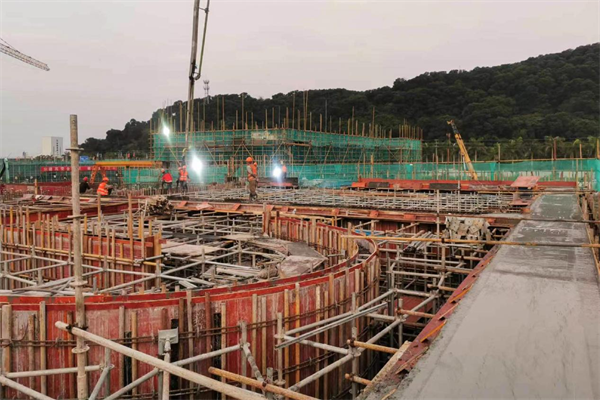 水廠項目開工之初,所在地的中山市有關(guān)領(lǐng)導(dǎo)希望項目部能夠起到“領(lǐng)頭羊”作用。項目部統(tǒng)籌安排、調(diào)兵遣將、合理布局;全體參建人員錨錠目標(biāo),分兵把口、攻堅克難、風(fēng)雨兼程,700名作業(yè)人員在有限空間里,高支模、起重吊裝、安裝起重機械、拆除現(xiàn)有工程,一派緊張大干氣象。