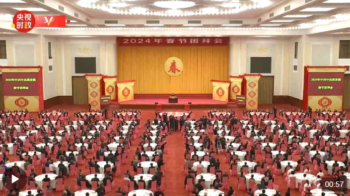 中共中央、國務院8日上午在人民大會堂舉行2024年春節(jié)團拜會。中共中央總書記、國家主席、中央軍委主席習近平發(fā)表講話,代表黨中央和國務院,向全國各族人民,向香港特別行政區(qū)同胞、澳門特別行政區(qū)同胞、臺灣同胞和海外僑胞拜年。
