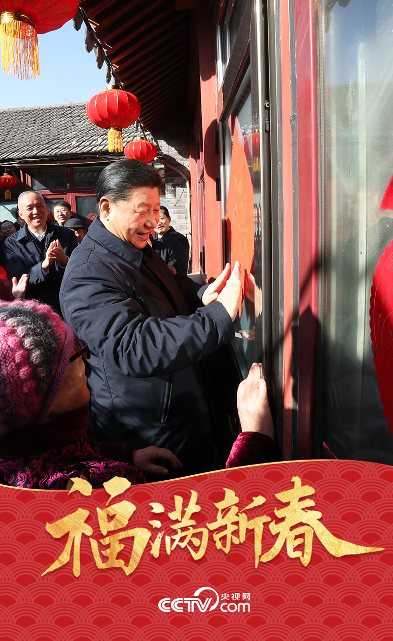 2019年2月1日,在北京前門東區(qū)草廠四條胡同32號(hào)小院,居民們熱情邀請(qǐng)前來(lái)拜年的總書記一起貼“福”字。總書記興致勃勃地拿起一幅紅底金色大“福”字,嫻熟地貼在大門上。他對(duì)居民們說(shuō):希望咱們街坊鄰居們永遠(yuǎn)幸福。