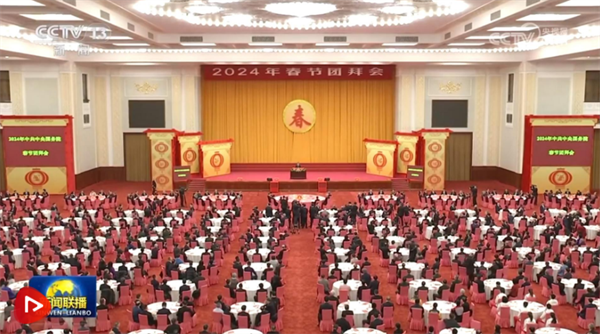 中共中央、國(guó)務(wù)院8日上午在人民大會(huì)堂舉行2024年春節(jié)團(tuán)拜會(huì)。中共中央總書(shū)記、國(guó)家主席、中央軍委主席習(xí)近平發(fā)表講話,代表黨中央和國(guó)務(wù)院,向全國(guó)各族人民,向香港特別行政區(qū)同胞、澳門(mén)特別行政區(qū)同胞、臺(tái)灣同胞和海外僑胞拜年。