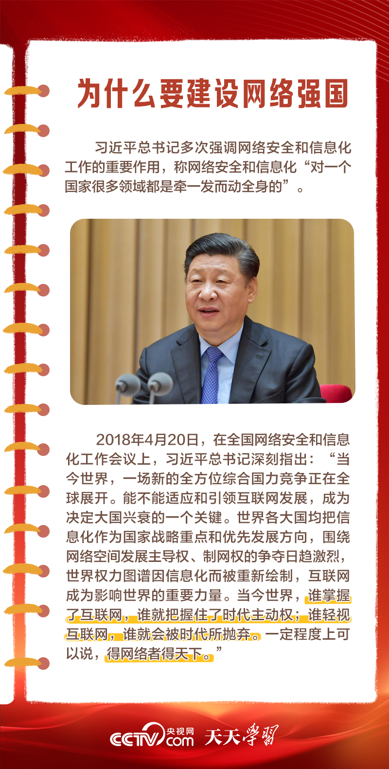 為何要建設(shè)網(wǎng)絡(luò)強(qiáng)國(guó)?總書記謀劃了一條怎樣的網(wǎng)絡(luò)強(qiáng)國(guó)之路?央視網(wǎng)《天天學(xué)習(xí)》與您一起學(xué)習(xí)思考。