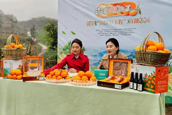 △2021年2月26日,在重慶渝北區(qū)大盛鎮(zhèn)青龍村舉辦的直播活動現場。