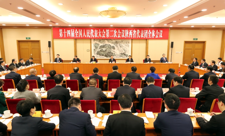 3月5日下午,陜西代表團舉行全體會議,審議政府工作報告。全國人大代表,中共中央政治局委員、中央組織部部長李干杰出席會議。