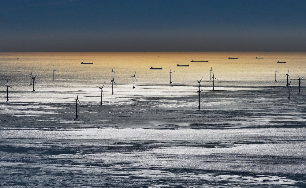 這是2023年12月22日拍攝的河北省唐山市海港經(jīng)濟(jì)開(kāi)發(fā)區(qū)轄區(qū)內(nèi)的海上風(fēng)電場(chǎng)(無(wú)人機(jī)照片)。
