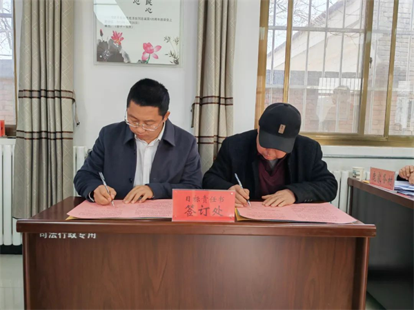 黨政主要領(lǐng)導(dǎo)與各村簽訂目標(biāo)責(zé)任書(shū),將指標(biāo)轉(zhuǎn)化為工作目標(biāo),將壓力轉(zhuǎn)化為工作動(dòng)力,將責(zé)任轉(zhuǎn)化為工作使命,確保全年工作高線達(dá)標(biāo)。