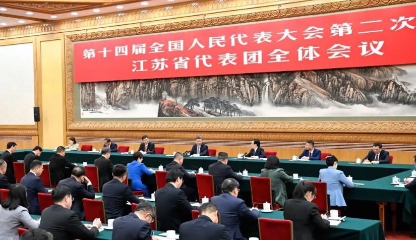 2024年3月5日,習(xí)近平參加他所在的十四屆全國人大二次會(huì)議江蘇代表團(tuán)審議。新華社記者 謝環(huán)馳 攝