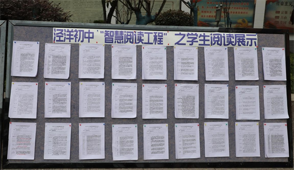 學(xué)校成立了專家組,從全校師生上交的2000余份作品中,遴選出75份優(yōu)秀學(xué)生作業(yè)成果和53篇教師優(yōu)秀閱讀成果,在校園集中布展。大家的智慧成果引來了廣大師生的駐足欣賞,成為涇中開學(xué)后一道靚麗的校園風(fēng)景。