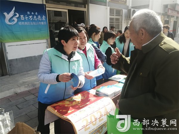 深入開展肺結(jié)核防治知識進(jìn)社區(qū)活動。3月24日,縣衛(wèi)健局、疾控中心、縣人民醫(yī)院、縣紫柏衛(wèi)生院聯(lián)合在城關(guān)社區(qū)開展了結(jié)核病和飲水安全宣傳活動?;顒悠陂g,醫(yī)務(wù)人員為群眾免費測量血壓、開展義診咨詢,現(xiàn)場志愿者從結(jié)核病的傳播途徑、防控措施及國家的優(yōu)惠政策方面,對前來咨詢的群眾進(jìn)行了詳細(xì)的解答,為來往居民介紹了結(jié)核病、飲水安全小知識?;顒赢?dāng)天,共計發(fā)放肺結(jié)核宣傳年畫200余張,宣傳冊、宣傳彩頁共計10余種500余份,圍裙、手提袋300余個,為群眾提供咨詢服務(wù)100余人次。