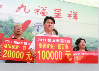 楊百章通過(guò)合陽(yáng)縣紅十字會(huì)向玉樹(shù)災(zāi)區(qū)捐款20萬(wàn)元